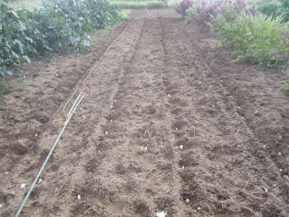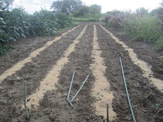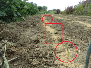 @10センチ間隔で仮置きし、数センチ程度の土をかけました。