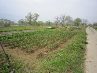 | 越冬後のニンニク群。2025.03.20 7:16 |