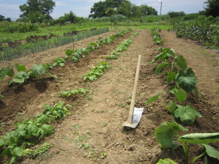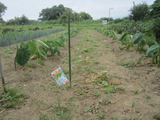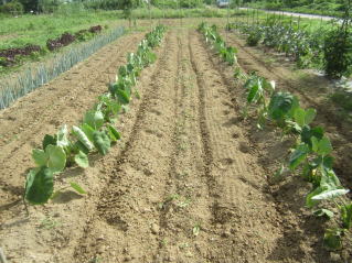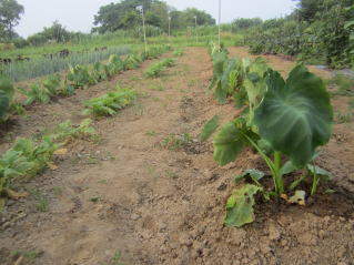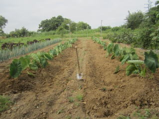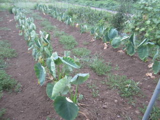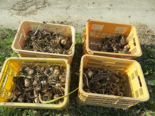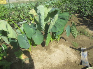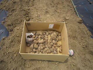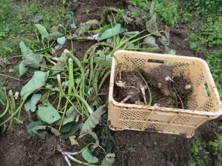| 山形名物「エモニカイ」(おらホではなまって芋煮会を意味する)のメイン材料となる里芋の栽培方法の紹介です。里芋の苗木はホームセンター1本150円前後と高価です。おらホでもこれまで苗木を購入して栽培していましたが、昨年から種芋から栽培して見事成功し、相応の成果を得ることが出来ました。 定植の準備 よく耕した地面に幅3~4尺のマルチ(黒い農業用ビニール)を敷き、固定します。マルチの敷き方にはコツがありますが、おらホでは風のない早朝にしています。 定植時期 さすが山形名物「エモニカイ」の古里。昔で言う八百屋と称する所の殆どの店舗で購入することが出来ますが、店毎に仕入れルート が違うようで当たりはずれもあるようです。 おらホでは4月末から八百屋、ホームセンター店頭にナス、キュウリ等ともに種芋が並び始めます。これを買い求めて5月1日前後に定植しています。 定植の仕方 ①1畝中約60センチ間隔となるように15センチの深さとなるように穴開け器で穴を開けていきます。 ②①に水を注ぎます。 ③芽の出る方が上になるよう穴に置き、厚さ5センチくらいになるように周りの土で埋め固定します。 ④昨年は、20日前後で芽が出ました。 手入れ 基本的にはほったらかしですが、乾燥には弱いようです。 肥料 芽が出たら第1回目は市販の顆粒状合成肥料をパラパラとかけ周りの土を土を寄せています。(サクヅカゲ) 20センチくらいになったら「尿素」「顆粒状合成肥料」をかけサクヅカゲ 茎落とし(茎の間引き) 8月初旬頃芋の茎、葉が大きくなったら数本残し、残りの茎を間引き切り落とします。切り落とした茎、葉は茎の周りに置き土で埋めます。(肥料になる?昔からそうしています。) マルチ撤去 お盆頃になっったらマルチを撤去し、通気がよくなるようにしています。 ポイント 遅霜の被害を避けるため、土を多めにかけ発芽が遅くなるようにしています。洪水には強いようです。 収穫 9月中旬頃から収穫できました。適宜順次好きなところから収穫していますが、10月下旬には全部収穫し、冬に備え保存します。 調理 ナント言ってもエモニジル(芋煮汁)でしょう。納豆汁、けんちん汁の具にも最適です。イカとドッキングさせての煮っ転がしも結構いけます。 |