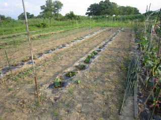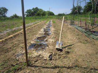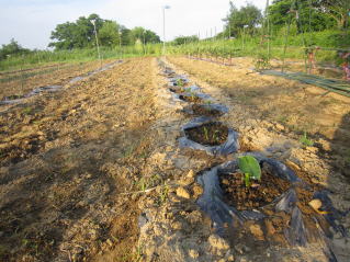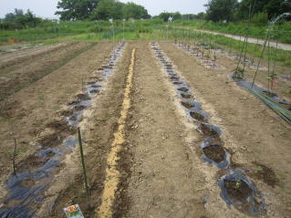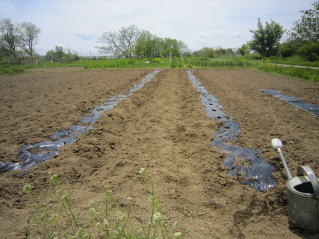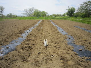 | マルチ張りは開始。左はキュウリ用。2025.05.05 9:55 | 二畝作業完了。2025.05.05 10:44 | ||||||||||||||||||||||||||