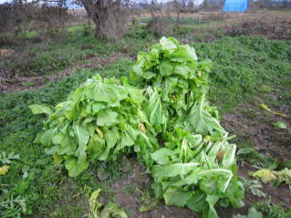 食べきれない分はそのまま畑で越冬させ、翌春若茎を茹でて楽しみます。 |