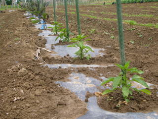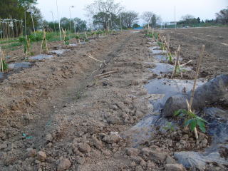 定植の仕方はナスと同じです。1本68円の苗を定植しました。