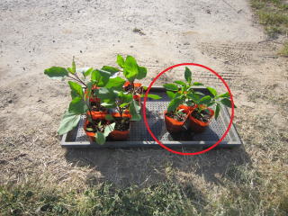 B苗ポットから苗を取り出し、Aに苗を入れ土で埋め固定します。