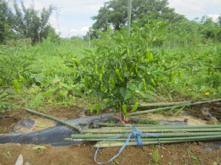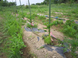 枝が大きくなってきたれら、倒れないように、また、地面に触れないように気をつけます。後はほったらかしです。とにかく雑草取りです。(時間がなくてなかなか出来ません。)