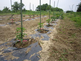 枝が大きくなってきたれら、倒れないように、また、地面に触れないように気をつけます。後はほったらかしです。とにかく雑草取りです。(時間がなくてなかなか出来ません。)