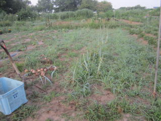 | 収穫前のタマネギ。雑草がひどい。2024.06.30 4:36 | 雑草取りしながらのタマネギ収穫。2024.06.30 5:31 | ||||||||||||||||||||||||||