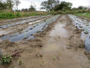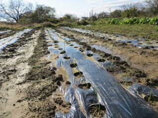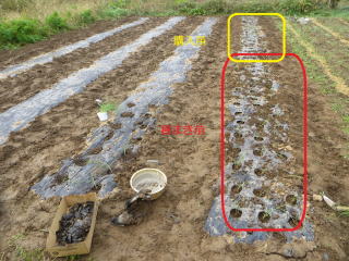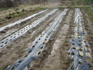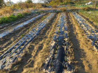 | 耕耘し、レーキング完了。降雨直後なので、力が必要だった。2025.10.13 10:29 | マルチ張り作業。2025.10.13 11:20 | ||||||||||||||||||||||||||