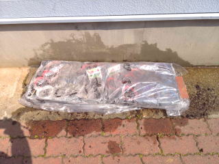 | 上土をかけ、指で押し付ける。後、水をかけ。2026.03.28 10:07 | ビニルをかける。温室効果を狙う。2026.03.28 10:12 |